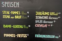 | Kaffee und Gipfeli Schweinshals-Steak Frühlingsrollen (vegi) Pommes Frites Mineral und Süssgetränke | 09.00 Uhr bis 11.00 Uhr 11.00 Uhr bis 19.00 Uhr |