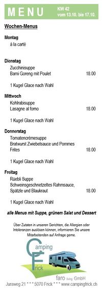 in der Campingsaison 2025 bieten wir wieder feine Menu's an.
